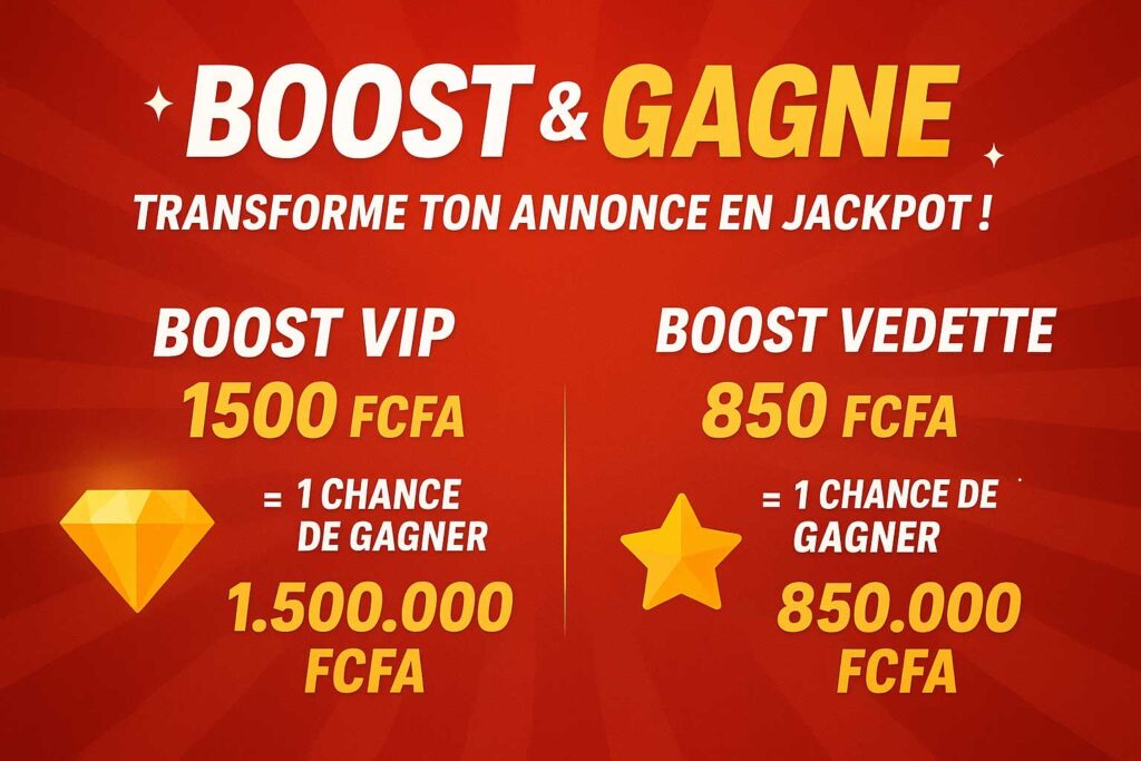 Acheter un boost à 1500FCFA Cliquez ici pour placer votre annonce en VIP Cliquez ici pour poster une annonce